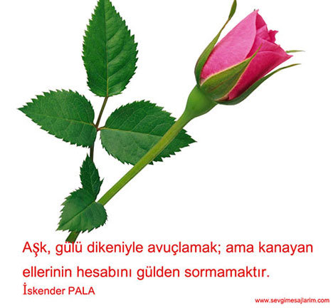 Aşk; gülü dikeniyle avuçlamak ama kanayan ellerinin hesabını gülden soramamaktır. -İskender Pala-