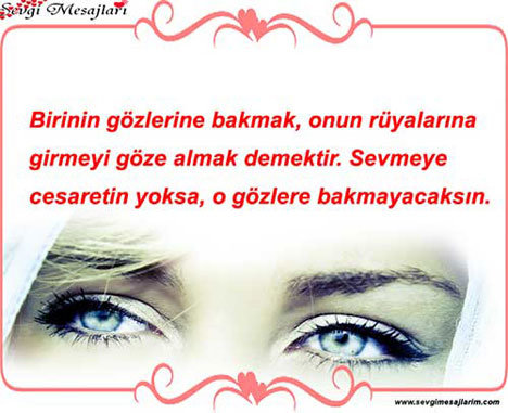 Birinin gözlerine bakmak, onun rüyalarına girmeyi göze almak demektir. Sevmeye cesaretin yoksa, o gözlere bakmayacaksın.
