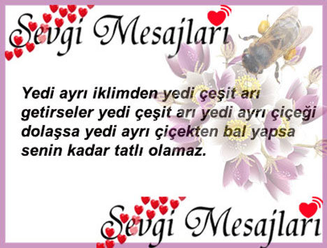 Yedi ayrı iklimden yedi çeşit arı getirseler, yedi çeşit arı yedi ayrı çiçeği dolaşsa, yedi ayrı çiçekten bal yapsa, senin kadar tatlı olamaz Bitanem.