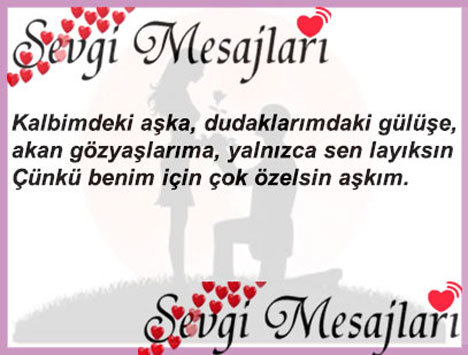 Kalbimdeki aşka, dudaklarımdaki gülüşe, akan gözyaşlarıma, yalnızca sen layıksın. Çünkü benim için çok özelsin Aşkım.